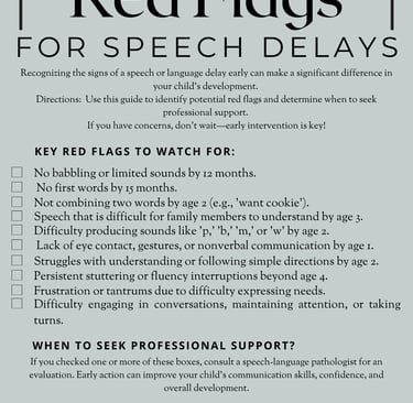 Download the free Red Flags for Speech Delay checklist here. While every child develops at their own pace, here are some common red flags that might indicate the need for professional support: